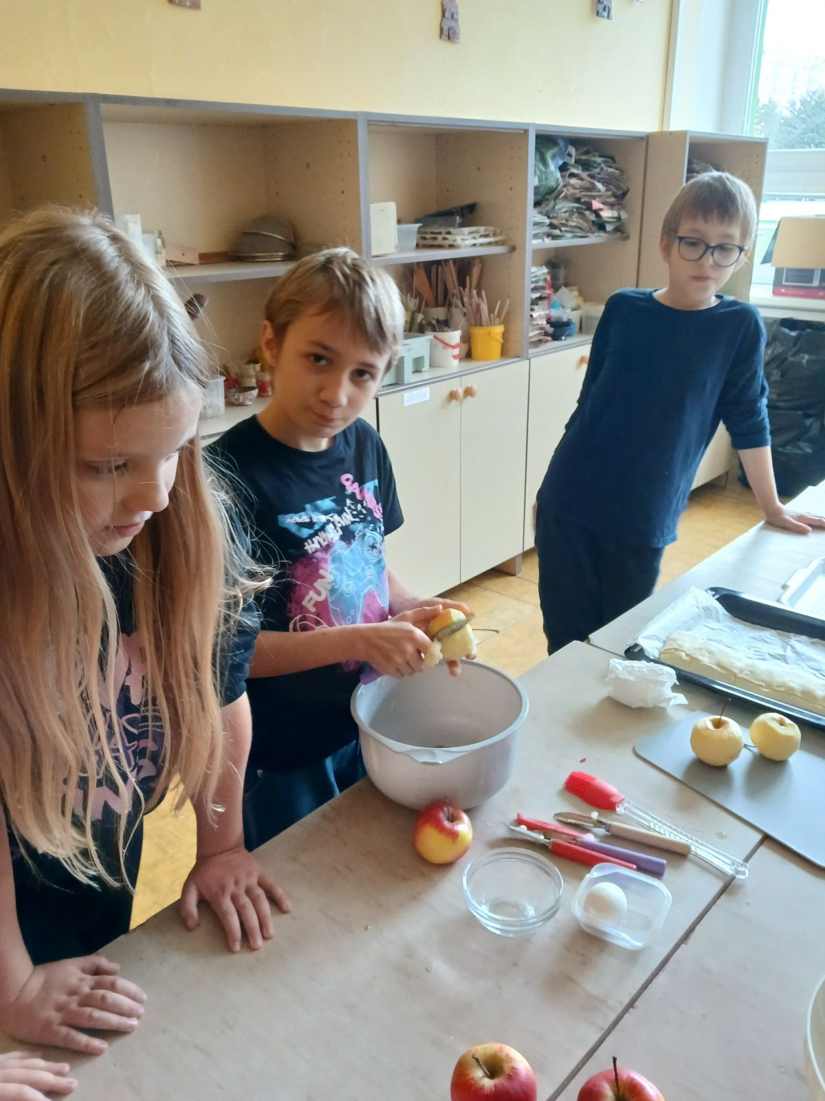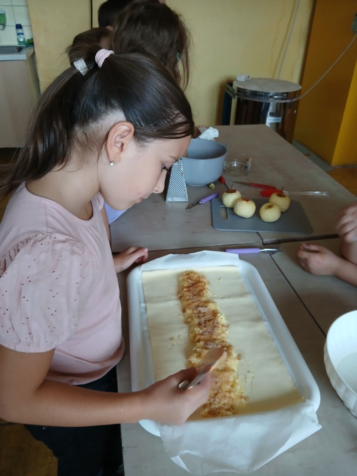 Děti pečou jablečný závin