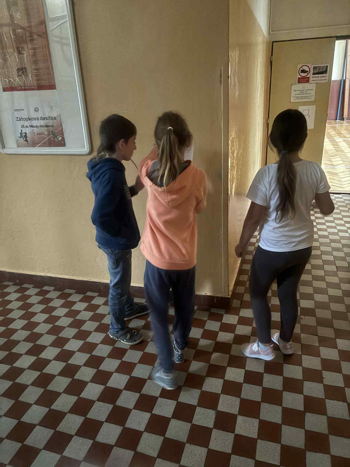 Dnešní akce proběhla na půdě školy, kde děti za pomoci starších kamarádů plnily úkoly a orientovaly se pomocí slepé mapy . Děti si akci užily a věřím, že se nikdo v prostorách školy již nikdy neztratí. 🙂