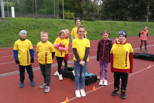 „V pondělí 19. 9., v den 100. výročí narození Emila Zátopka a jeho ženy Dany, se konala ,,Soutěž škol" na hřišti ZŠ Alšova. 8 žáků z 1. stupně naší školy nastoupilo ke startu ve žlutých dresech. Ani tato sluníčková barva však nedokázala rozehnat dešťové mraky a v průběhu soutěže začalo hustě pršet. Soutěž byla pro nepřízeň počasí přerušena. Ze sedmi disciplín jsme stihli splnit pouze čtyři. Děti i v dešti pečlivě dodržovaly předepsaná pravidla, ale nebyly tak rychlé, aby dosáhly na stupně vítězů. Přesto byli všichni zúčastnění ohodnoceni pěknými odměnami.“