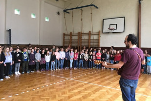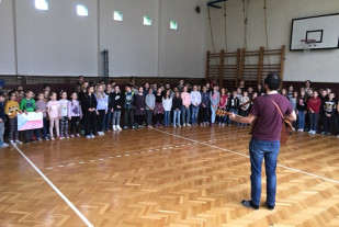 Děti 1. - 4. tříd se ráno sešly v tělocvičně naší školy a zahájily den společným zpíváním. Ve třídách pak většinou muzicírování ještě pokračovalo.