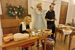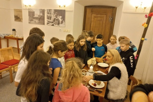Žáci se sami podíleli na jednoduché květinové výzdobě v místnosti muzea, někteří poprvé ochutnali mazanec a lipový čaj.