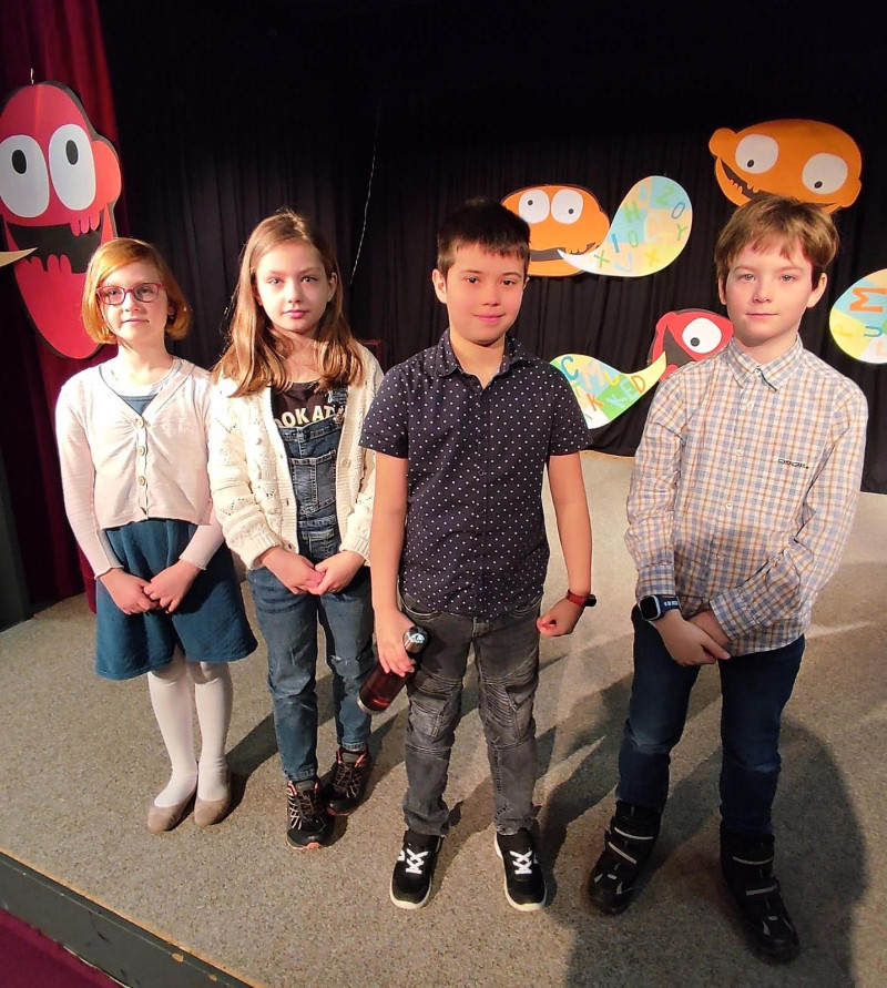 „Ve středu 29. 3. se žáci postupující ze školního kola recitační soutěže - Eva Pustějovská a Kristián Chroust ze 3. A, spolu s Nikol Surovcovou ze 4. A a Adrianem Heraltem ze 4. B - zúčastnili okrskového kola, které se konalo v KDK. Konkurence byla velká. V kategorii 2. – 3. tříd se soutěže zúčastnilo 12 dětí, v kategorii 4. – 5. tříd 13 dětí. Naši soutěžící, přestože byli moc šikovní, do okresního kola nepostoupili, ale mají za sebou pěkný zážitek a novou zkušenost. Obdrželi pamětní list a sladkou odměnu. Každopádně jim gratulujeme a moc děkujeme.“