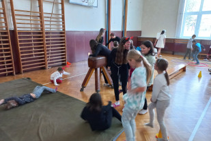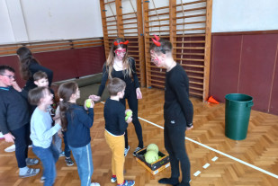 Do odpoledního programu se školní družinou se zapojilo 11 žáků z 9. A a 2 žákyně z 9. B třídy. V zrcadlovém sále si Mikuláš s anděly a čerty s dětmi povídali a tělocvična se proměnila v peklo. Všechny děti i paní vychovatelky s čerty na stanovištích soutěžili, skotačili, tančili, ale i tvořili.