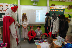 Žáci nejvyšších ročníků si i letos pro své spolužáky připravili krásný den s Mikulášem, čerty a anděly.