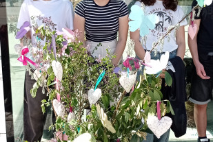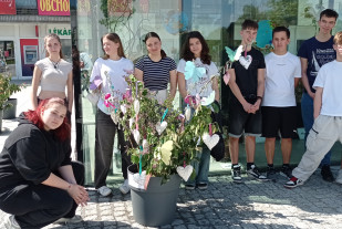 V pondělí 29. dubna žáci 9. ročníku nazdobili přichystané větvičky v květináčích u výstavního pavilonu v centru Kopřivnice. Každá mateřská a základní škola předvede, jaké ozdoby žáci vytvořili na téma ,,Máj - lásky čas". Z naší školy se na výrobě podíleli žáci 2. stupně s paní učitelkou Petrou Tománkové v hodinách výtvarné výchovy.