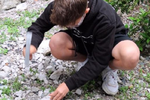 Závěr exkurze byl tím, na který se většina třídy těšila nejvíce – možnost vytvořit si paleontologickou sbírku zkamenělých živočichů. V zahrádce u muzea jsme hledali vhodné valouny vápence, ve kterých pak žáci pomocí geologického kladívka hledali zkameněliny. Všichni byli úspěšní, a tak si každý odnesl domů kousek vápence s pozůstatkem pradávného živočicha.