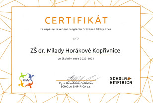Pozorní čtenáři našich stránek si jistě všimli, že se naše škola zapojila do programu KiVa pro prevenci a řešení šikany, který vznikl