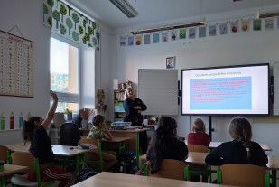 Paní policistka dětem vysvětlila, co kyberšikana znamená a jak může vypadat například na sociálních sítích. Upozornila žáky na to, jak je důležité chránit své osobní údaje, proč je nutné být opatrný při sdílení fotek a svého soukromí.