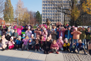 1. oddělení: dřevěné srdce vyřezané s básničkou na podporu a vzadu s fotkou všech dětí ŠD u sochy E. Zátopka