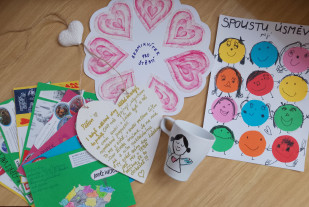 Petr je rád za pohlednice z různých měst. Tak jsme se dohodli, že ho podpoříme a jednotlivá oddělení ŠD vyrobila dárky, které Petrovi hromadně pošleme.
