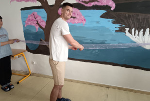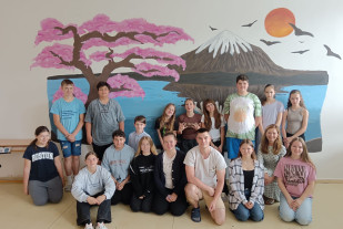Květen byl pro 7. B měsícem tvoření. Během několika týdnů žáci proměnili zadní stěnu své třídy v malebnou krajinu s kvetoucí sakurou. Návrh motivu vzešel od Veronika Kahánkové, která nejen plánovala a malovala, ale dokázala do štětců zapojit i své spolužáky.