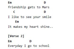společná tvorba písně – jak melodie, tak textu. Spolupráce probíhala tak, že jedna škola vytvořila úvodní část melodie, na kterou druhá škola navázala svou částí. Stejným způsobem vznikal i text písně.