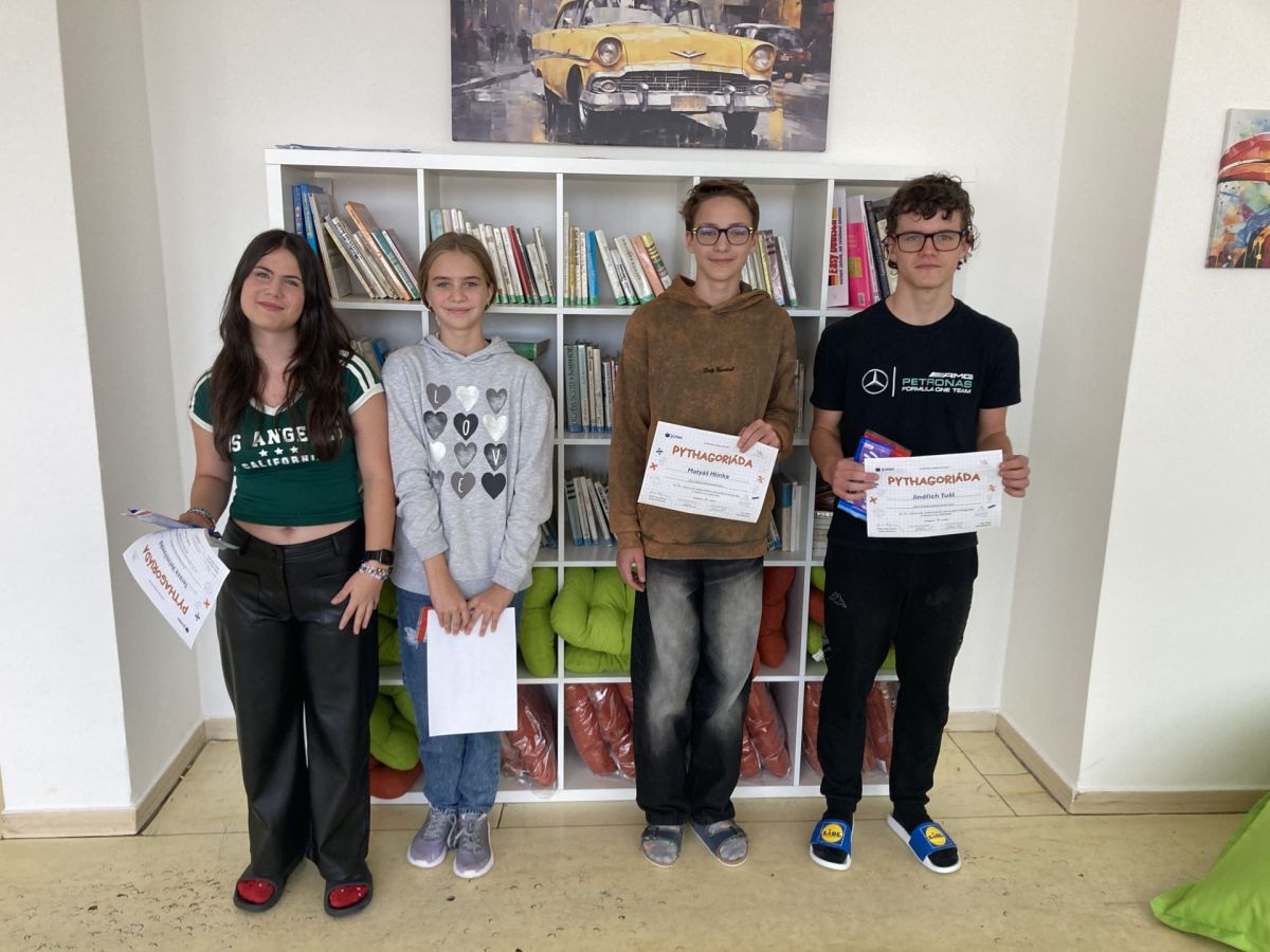 Čtyři žáci – Linda Konvičková a Tereza Veřmiřovská ze 6. tříd a Jindřich Tušl a Matyáš Hlinka z 9. tříd – se stali úspěšnými řešiteli