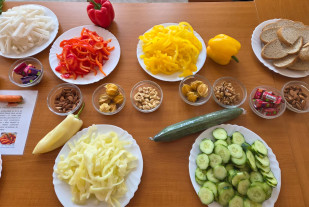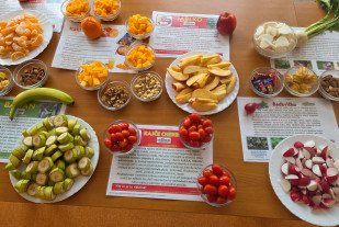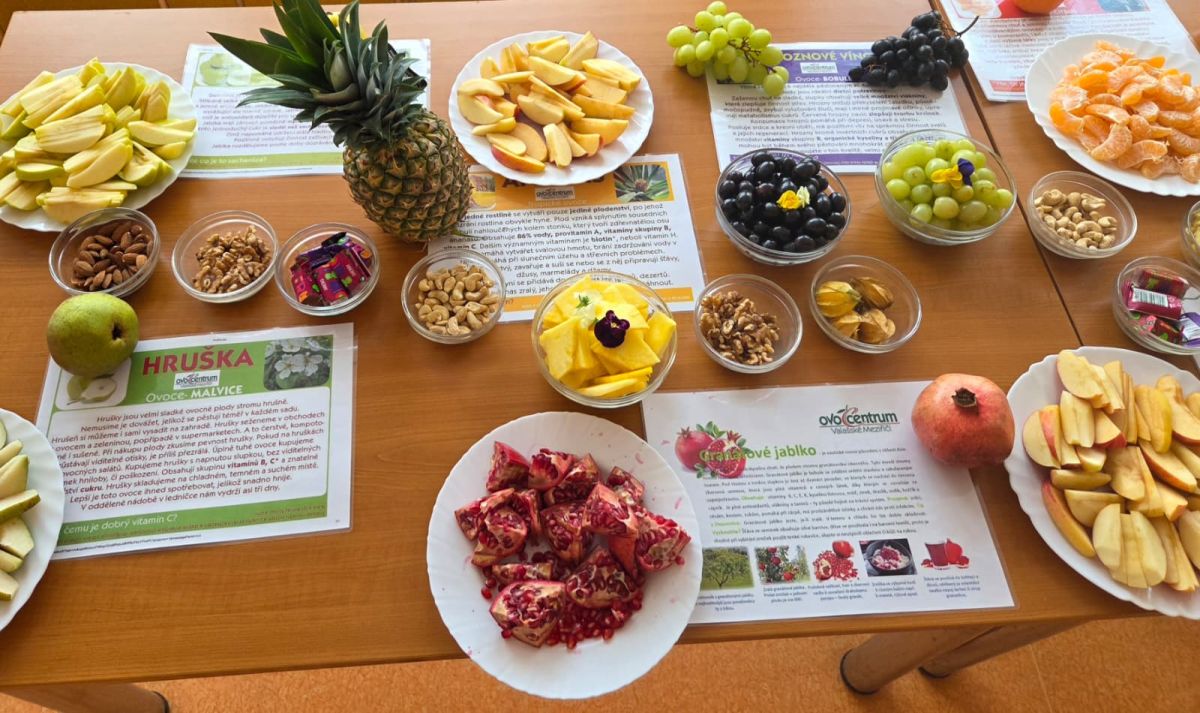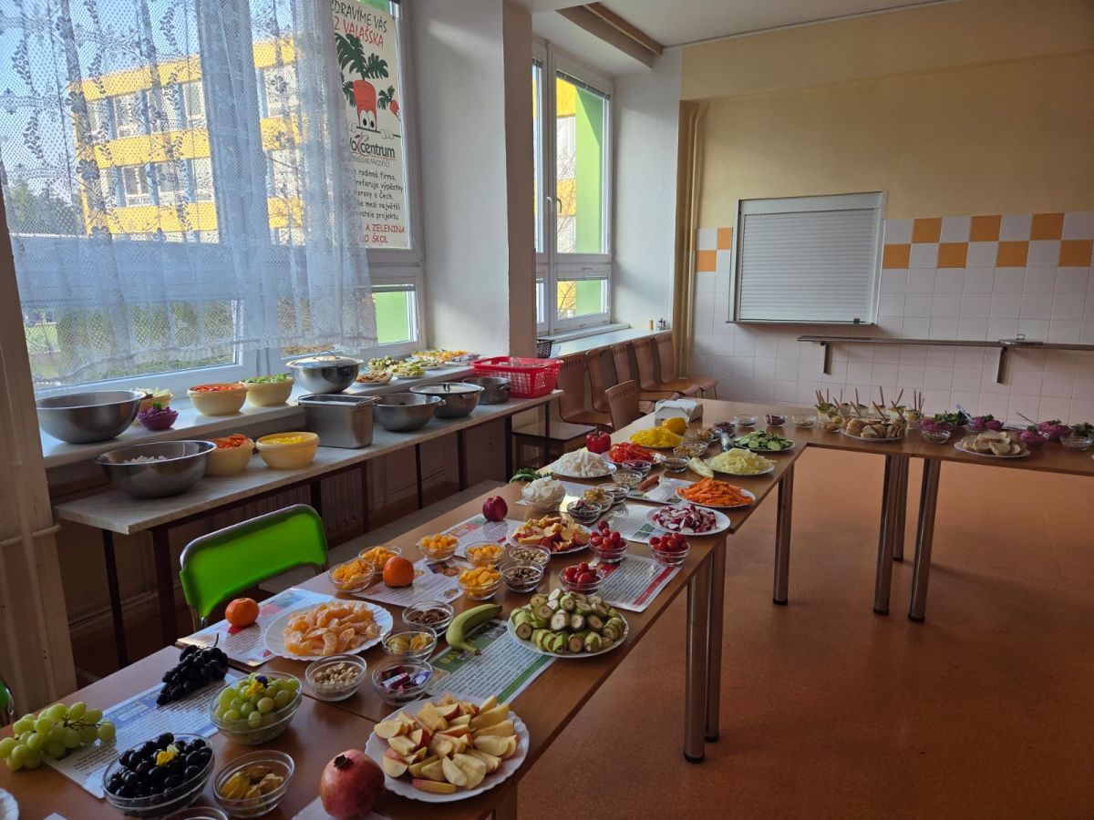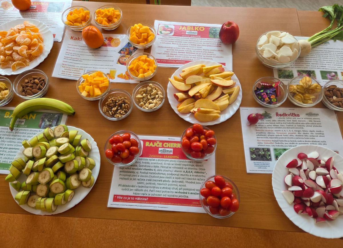 Již mnoho roků je naše škola zapojena do projektu Ovoce a zelenina škol a spolupracuje s Ovocentrem V+V s. r. o. z Valašského Meziříčí. Během dne otevřených dveří jsme mohli nabídnout ochutnávku ovoce, zeleniny, ořechů, které nám tato společnost přímo na tuto akci doručila. Paní kuchařky nám připravily sladký dezert z tvarohu s meruňkovým přelivem a několik zdravých pomazánek. Největší úspěch měla pomazánka z mrkve a avokáda, pomazánky z červené řepy, dýně a čočky lákaly návštěvníky méně, ale také našly své příznivce.