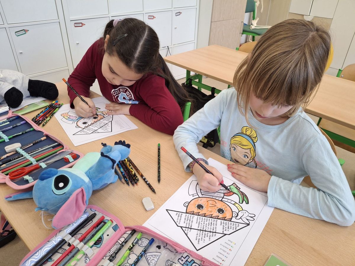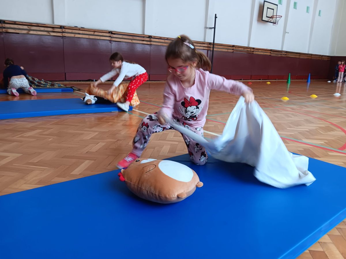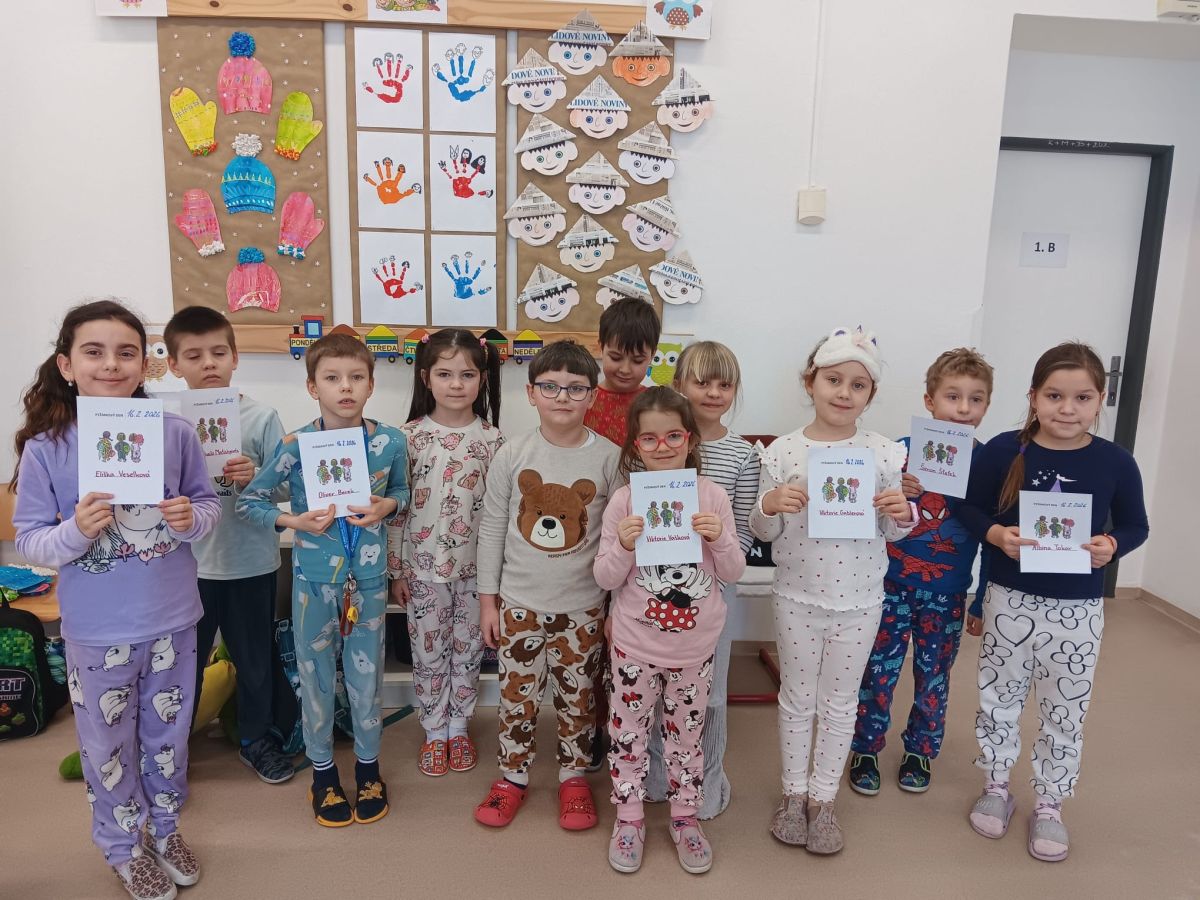 Prvňáčci a žáci 3. A si ve škole užili netradiční „pyžamový den“. Hned ráno přicházely děti do třídy v barevných pyžamech, některé si přinesly i oblíbené plyšáky nebo polštářky. Během dne panovala ve třídách uvolněná a radostná atmosféra. Nechyběly zábavné soutěže, cvičení s plyšáky a hry. Děti spolupracovaly, smály se a celý den si opravdu užily.