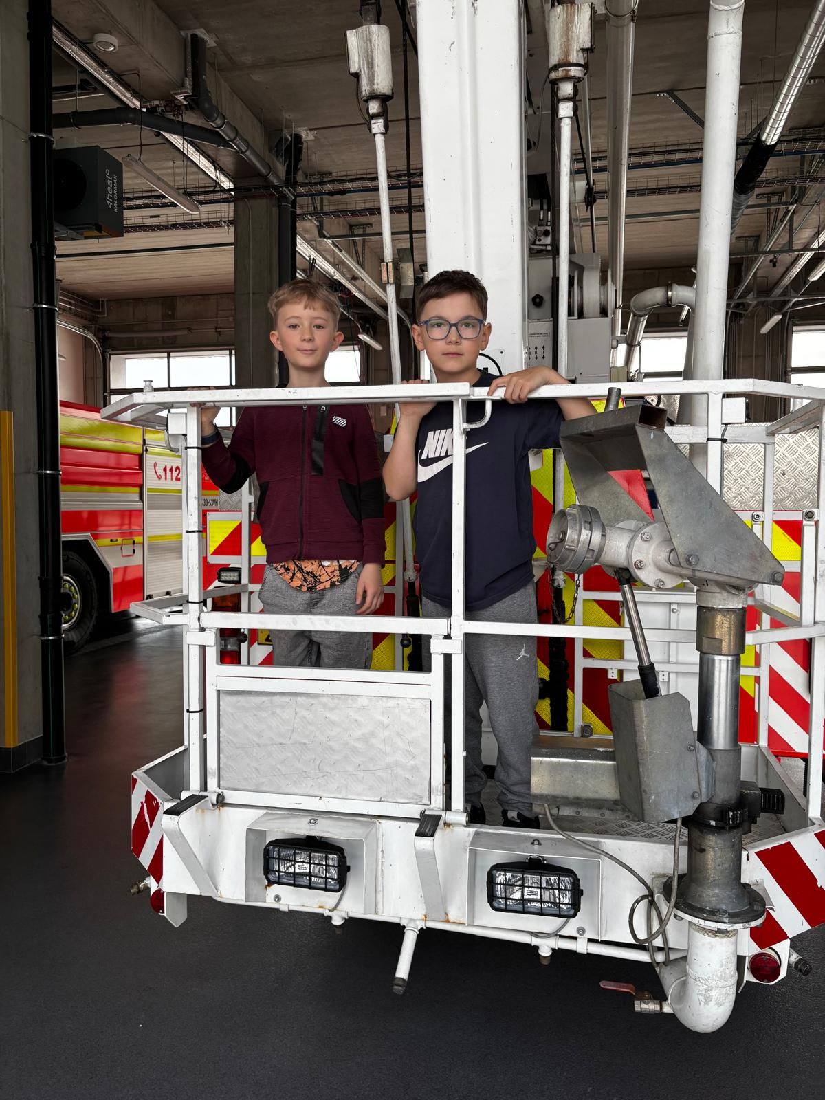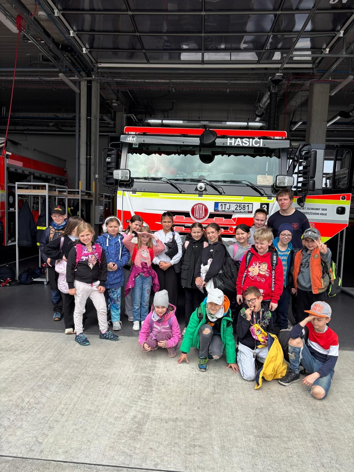 Čekal nás skvělý program ✨ – dozvěděli jsme se, co obnáší práce hasiče 🔥, prohlédli si jejich zázemí i vybavení. Zblízka jsme obdivovali hasičská auta 🚒.