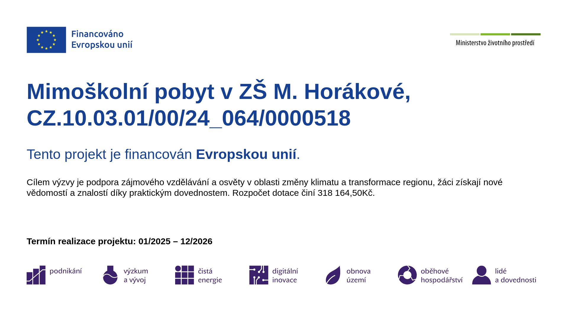 Mimoškolní pobyty v ZŠ dr. M. Horákové